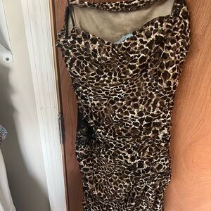 Stylish leopard print dress with spaghetti straps. Perfect for a night out.