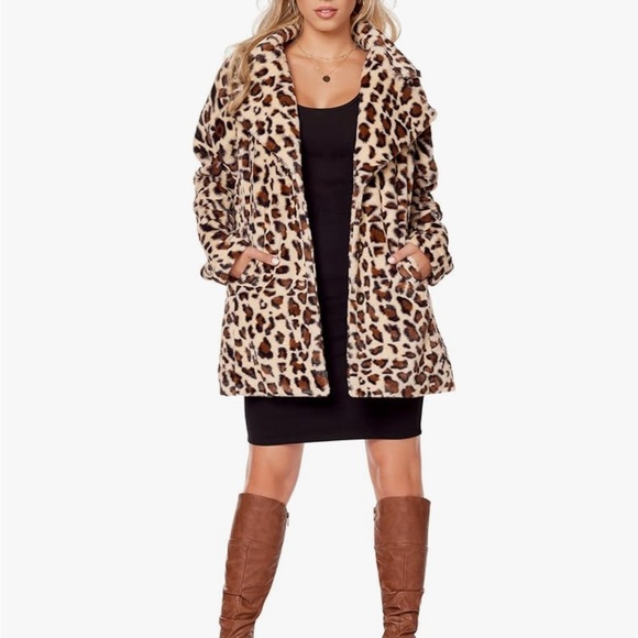 Stay stylish and warm with this chic leopard print faux fur coat. Perfect for adding a touch of glamour to any outfit.