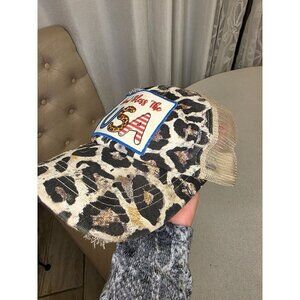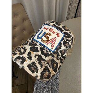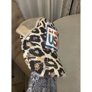 Leopard Print God Bless The USA Distressed Trucker Hat With Mesh Back