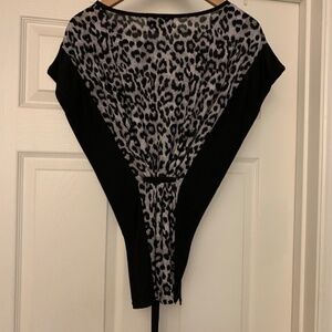Leopard Print Grey Black Belted Business Casual Top Isabella Rodriguez Size S