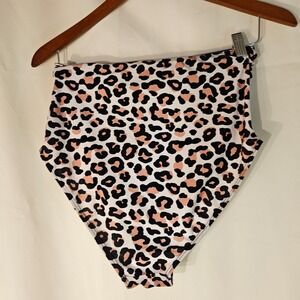 NWOT, SKU C119. Unleash your inner wildcat with these high-waisted swimsuit bottoms, where bold style meets flattering design. The eye-catching leopard print in shades of white, black, and peach creates a playful yet sophisticated look. The high-waisted cut accentuates your curves and provides comfortable coverage, making you feel confident and chic. The sleek design ensures a smooth silhouette, perfect for lounging by the pool or taking a dip in the ocean. These bottoms are ideal for a tropical vacation, a weekend getaway, or simply soaking up the sun at your local beach.