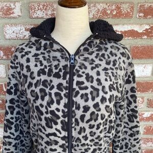 Stay stylish and warm with this chic leopard print jacket. Perfect to wear during cold weather or just wear it to lounge around in the comfort of your very own home. Used but still in good condition. No holes, rips, tears, stains, snags. No trades please. Bundle this with other items in my closet for me to give you a discount.