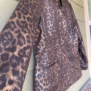 Elevate your style with this chic leopard print jacket. Perfect for adding a touch of sophistication to any outfit.