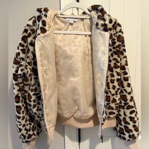 Stylish and cozy leopard print jacket. Perfect for adding a touch of fun to any outfit.