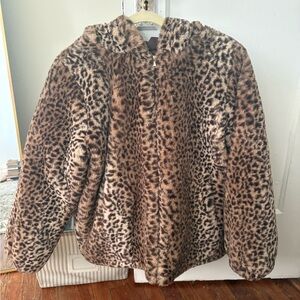 Fuzzy leopard/cheetah bomber fully lined jacket