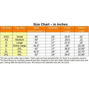 Sizes: Size chart provided in the graphics. The sizes in the selection box are US Sizes