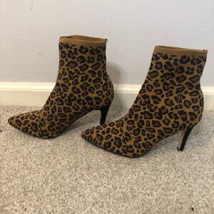 Leopard Print Knit Ankle Boots | Faux Suede 4" Heel | Size 8 | Chic & Comfy