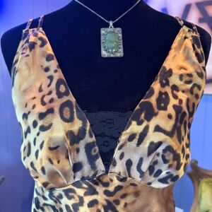 Unbranded (cut label) Leopard Print Lace Slip Dress