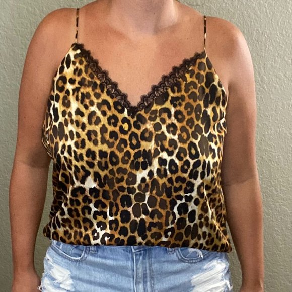 Leopard Print with Lace Trim Cami, worn once Pet free and smoke free home Express - Originally $48