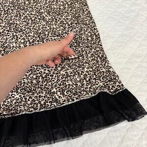 Leopard Print Lace Trim Mini Dress Sz L Sexy Slip Style Y2K Party Clubwear