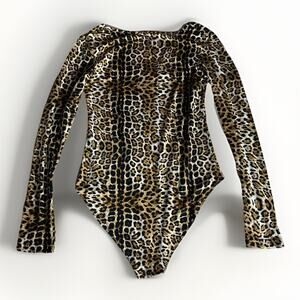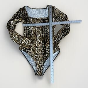 Leopard Print Long Sleeve Bodysuit Women’s Size S Stretchy Snap Closure Y2K Glam