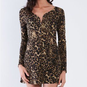 Leopard Print Long Sleeve Button Down blouse or Mini Dress