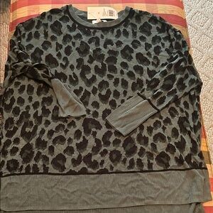 Stylish leopard print long sleeve top. Features a ribbed hem and cuffs.