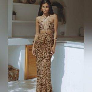 Turn heads with this stunning leopard print maxi dress. Perfect for any occasion, this dress combines elegance with a bold pattern. The brown tones add a touch of sophistication to your wardrobe.