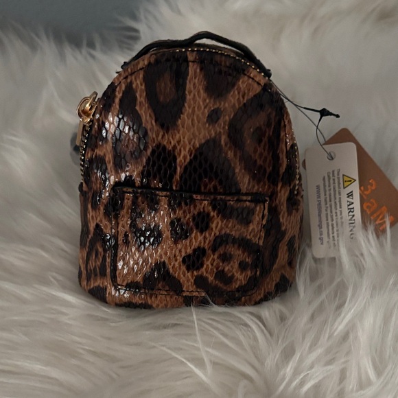 Stylish leopard print mini backpack perfect for a chic look. Features a bold animal pattern that adds flair to any outfit.