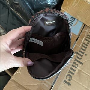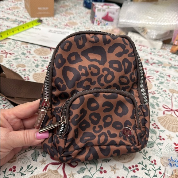 Stylish leopard print mini backpack perfect for everyday use. Features a bold brown pattern with convenient zippered pockets.