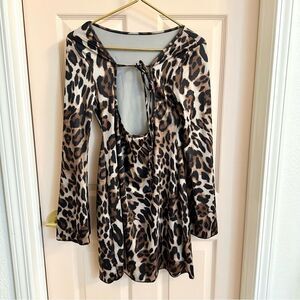 Turn heads with this chic leopard print mini dress. Perfect for a night out or a stylish day look.