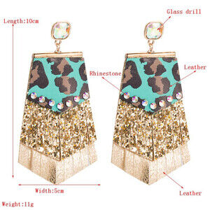 Brand new Leopard Print Multi-layer Leather Sequined Earrings In Silver. Great for any occasion.