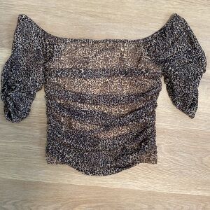 Stylish leopard print off-shoulder top perfect for any occasion. Features a chic design with a comfortable fit.