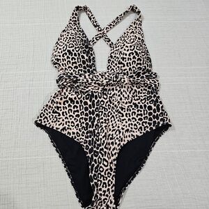 Leopard Print One-Piece Swimsuit Sz 1XL