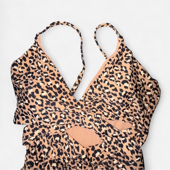 Stylish leopard print wrap one-piece swimsuit with adjustable straps. Only worn once to try on.