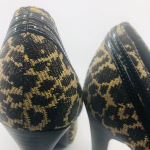 Fancy, frilly and fabulous sums up these gems! Decked in a classic leopard print, these peep toe shoes scream "See Me!!" Worn once & in practically new condition these shoes will definitely please.