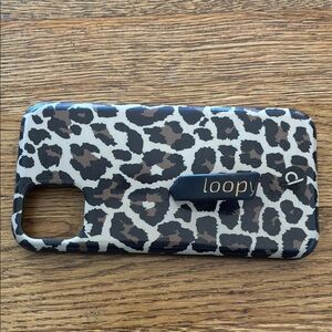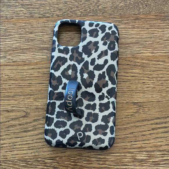 Stylish leopard print phone case featuring a convenient loop handle for secure grip. Perfect for adding a touch of wild elegance to your device.