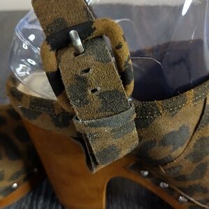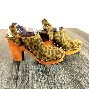 Step out in style with these chic leopard print platform clogs. Perfect for adding a bold touch to any outfit.