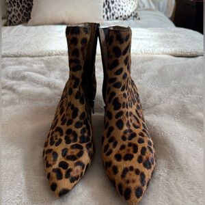 Leopard Print Pony Hair Kitten Heal Booties | size 6.5 | Chic & Stylish!