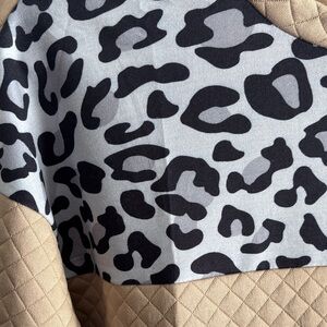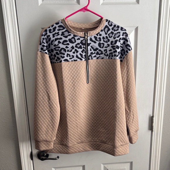 Stylish pullover with leopard print and quilted design. Features a half-zip front.