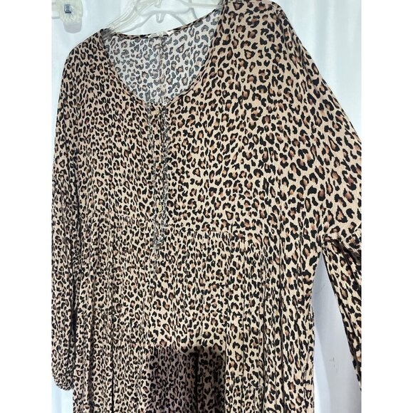 Leopard Print Rayon Long Sleeve Tiered Tunic Langon L by Easel L