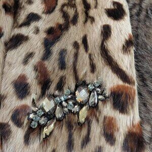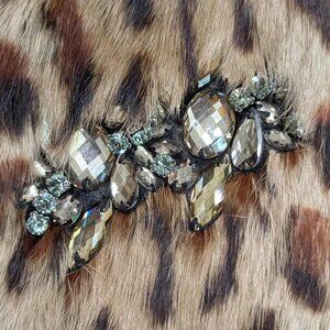 Beautiful and Classy Leopard Print real rabbit fur Scarf with Rhinestone embellishment by Adrienne Landau. Fur origin is from Spain.