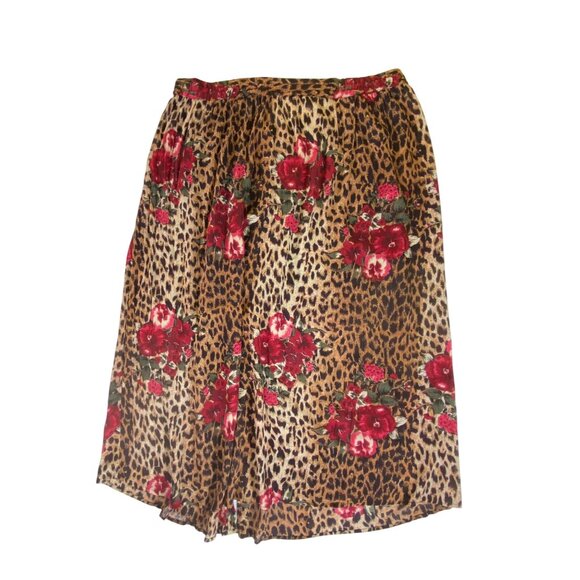 Leopard Print Red Rose Floral Skirt Large Boho Retro Punk Rock Western Goth Y2k