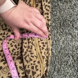 Leopard Print Ribbed Boho Purse Bag w/ Multicolor Straps & Smiley Faces. Zips closed with strap to be worn over the shoulder or crossbody. Purse has some stray marks inside, but is otherwise in very good used condition on the outside. Please see close-up pictures for condition details and measurements.