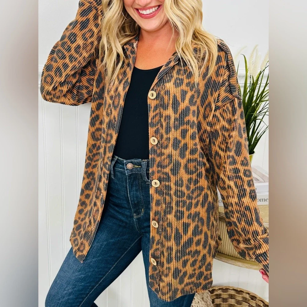 NWOT Heimish Spotted in Style Shacket size large. Super soft, ribbed material. Runs true to size with a flowy fit.