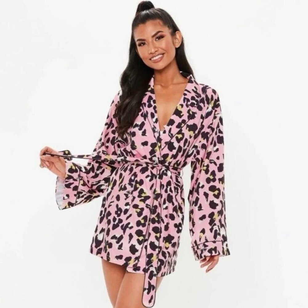 Missguided Pink Leopard Print Robe