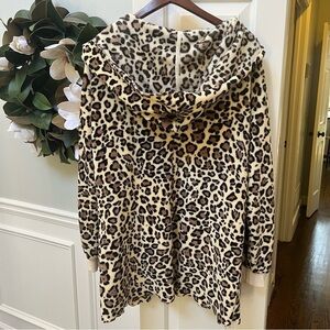 Trendy leopard print robe 🐆 with hoodie and pockets! Perfect for a bold look. Soooo soft and comfortable! EUC, no noted flaws, holes or stains 100% very cozy polyester/easy to wash Comes from a smoke-free, pet-adoring home 😊