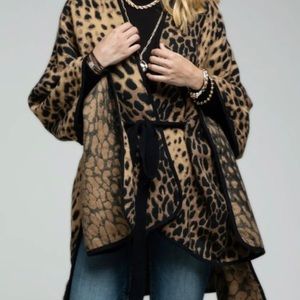 Leopard Print Ruana with belt tie. 100% Acrylic