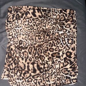Stylish leopard print tube top with ruched detailing. Perfect for a chic look.