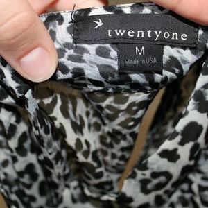 Ruffley leopard print top. Sleeveless, bottoms up at neck in the back, and has a stretchy bottom. Slightly sheer. Size medium. Fun top to wear out and about, and looks perf with black jeans! Could be professional with slacks and a jacket though. Loved this top. Still in great condition.