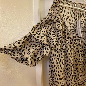 Stylish leopard print blouse with ruffle sleeves. Perfect for a chic look. Size 3x. New with tags.