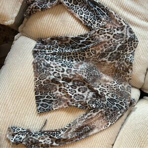 Stylish leopard print blouse with elegant ruffle details. Perfect for adding a touch of wild sophistication to your wardrobe.