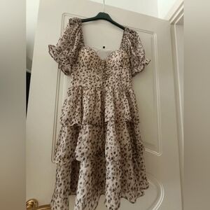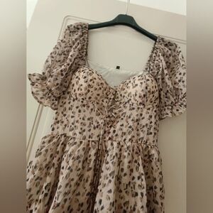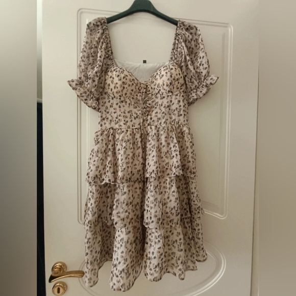 Chic leopard print dress with ruffle details. Perfect for any occasion.