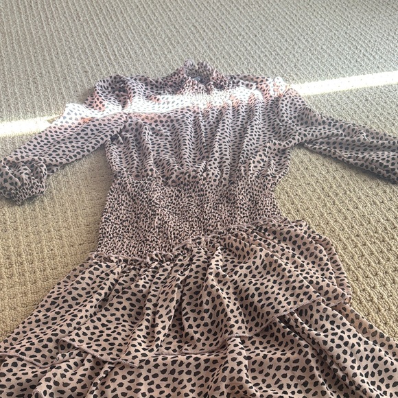 Stylish leopard print dress with ruffle details. Perfect for any occasion. 530