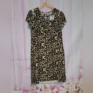 Stylish leopard print dress with ruffle details and off shoulder cut outs. Soft t-shirt type material. Size M.