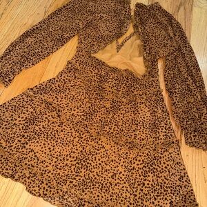 Embrace your wild side with this stunning leopard print ruffle dress. Perfect for any occasion, this dress combines style and comfort effortlessly.