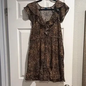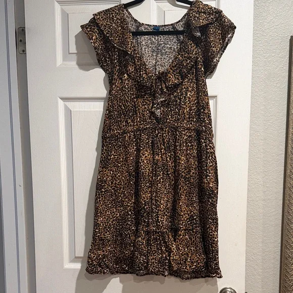 Embrace your wild side with this chic leopard print dress. Featuring playful ruffles, it's perfect for any occasion.