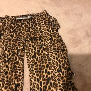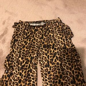 Stylish leopard print pants with ruffle details. Perfect for a bold fashion statement.