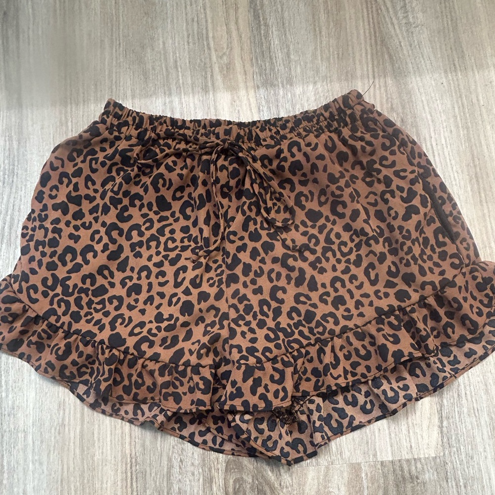 Stylish leopard print shorts with ruffle hem. Perfect for casual wear.