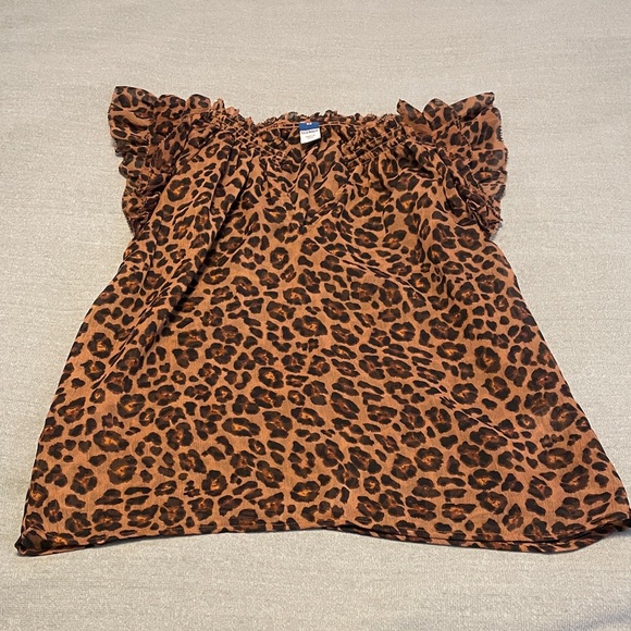 Stylish leopard print top with ruffle sleeves. Perfect for a bold look.